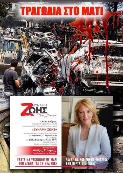 Βεβαίως, η Ρένα Δούρου τρώει ηχηρό χαστούκι από τους πολίτες καθώς είναι καταδικασμένη στη συνείδησή τους για τις δύο τραγωδίες στο Μάτι και στη Μάνδρα. Η αλαζονική συμπεριφορά με την οποία αντιμετώπισε την εθνική καταστροφή του περασμένου Ιουλίου, η άρνησή της (όπως και της κυβέρνησης) να ζητήσουν συγγνώμη για την ανυπαρξία σχεδίου και η στάση της να κατηγορεί τους άλλους για τους 100 νεκρούς από τη φωτιά, εκτιμώνται ως προσβολή στη μνήμη των θυμάτων.