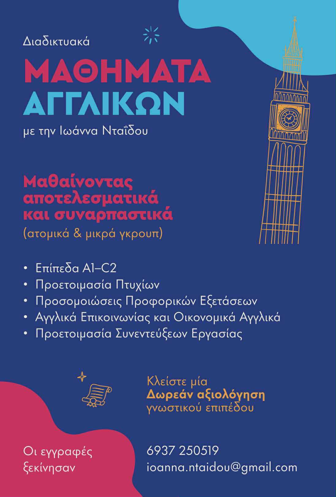 Η Ιωάννα Νταΐδου διδάσκει Αγγλικά Online με τρόπο που προσαρμόζεται στις ανάγκες, τον ρυθμό και την ψυχολογία κάθε μαθητή.